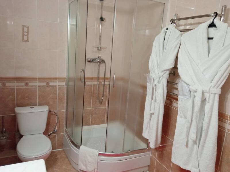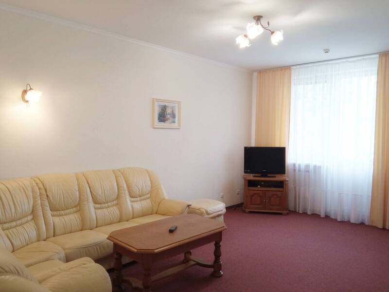 Просторный номер с двуспальной кроватью и мягким диваном. В номере имеются: